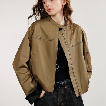 Women’s Khaki Slim Fit Canvas Workwear Jacket with Turn-Down Collar