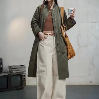 Women’s Double-Sided Lyocell Cotton Long Trench Coat – Wide Waist Street Style